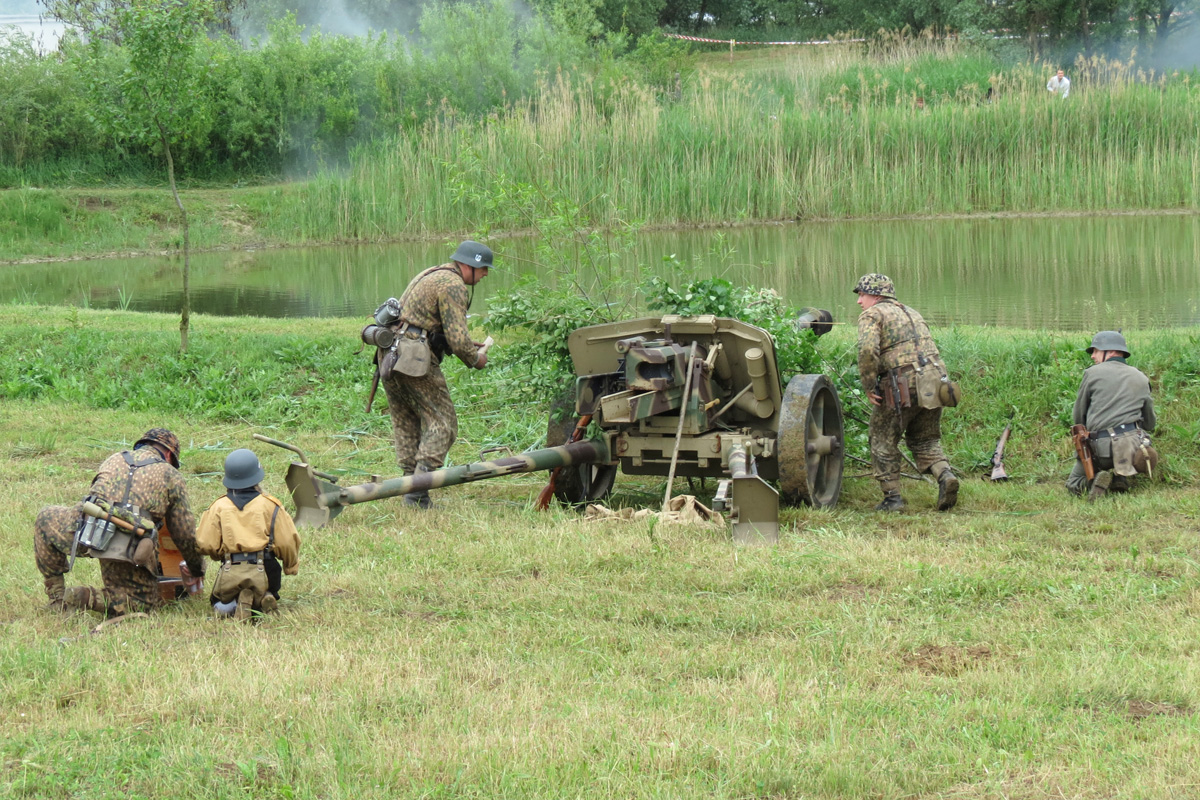 Příprava k palbě ← Předchozí Další → Příprava k palbě Palebné postavení zaujala i obsluha kanónu Pak 40.